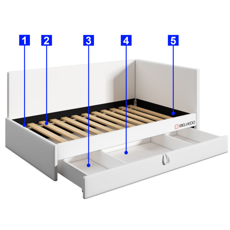 • Łóżko w 4 elementach do samodzielnego montażu.