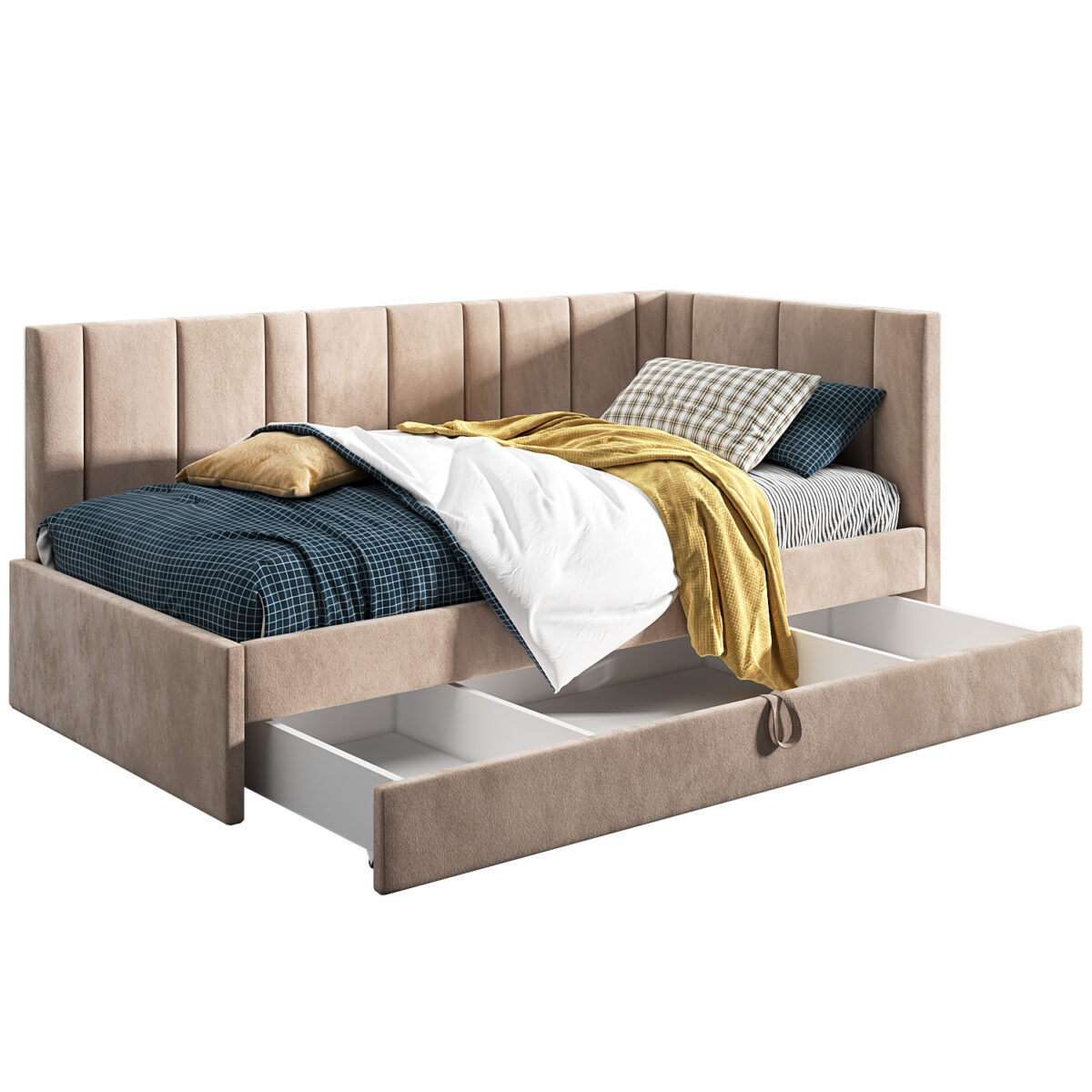 Łóżko młodzieżowe 90×200 Supreme Luka, Beżowy, Szuflada