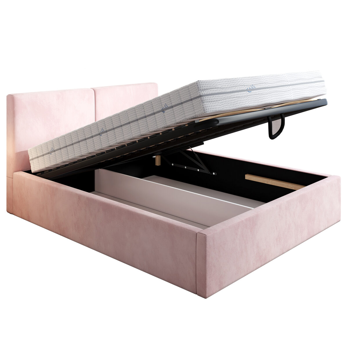 Strona główna > Łóżka tapicerowane > Łóżko tapicerowane 140×200 ALBA, Stelaż metalowy, Różowy