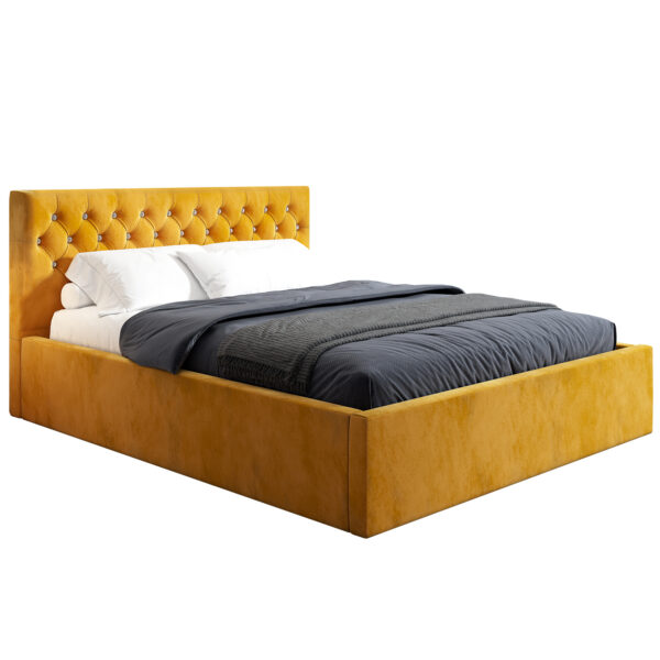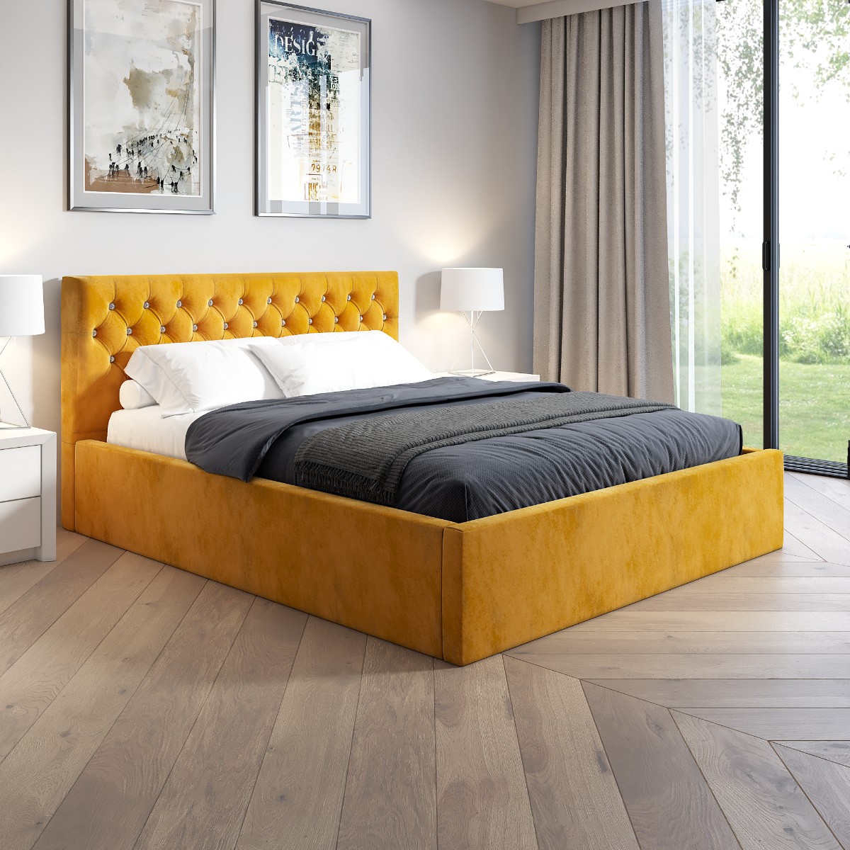Łóżko tapicerowane 140×200 DOHA, Musztardowy, Pojemnik