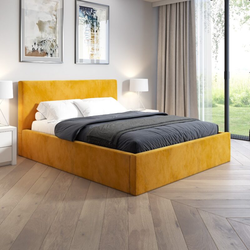 Łóżko tapicerowane 140×200 ENNA, Stelaż metalowy, Musztardowy