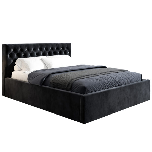Łóżko tapicerowane 160×200 DOHA, Czarny, Pojemnik