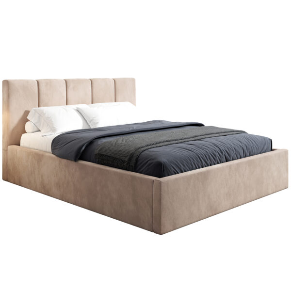 Łóżko tapicerowane 160×200 METZ, Beżowy, Pojemnik