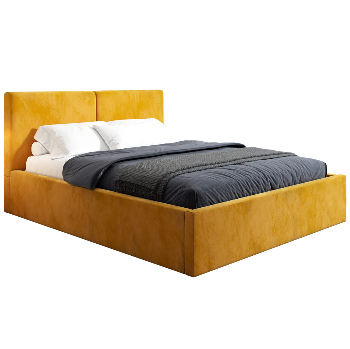 Łóżko tapicerowane 180×200 ALBA, Musztardowy, Pojemnik