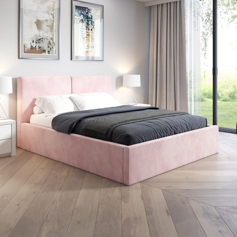 Łóżko tapicerowane 180×200 ALBA, Różowy, Pojemnik