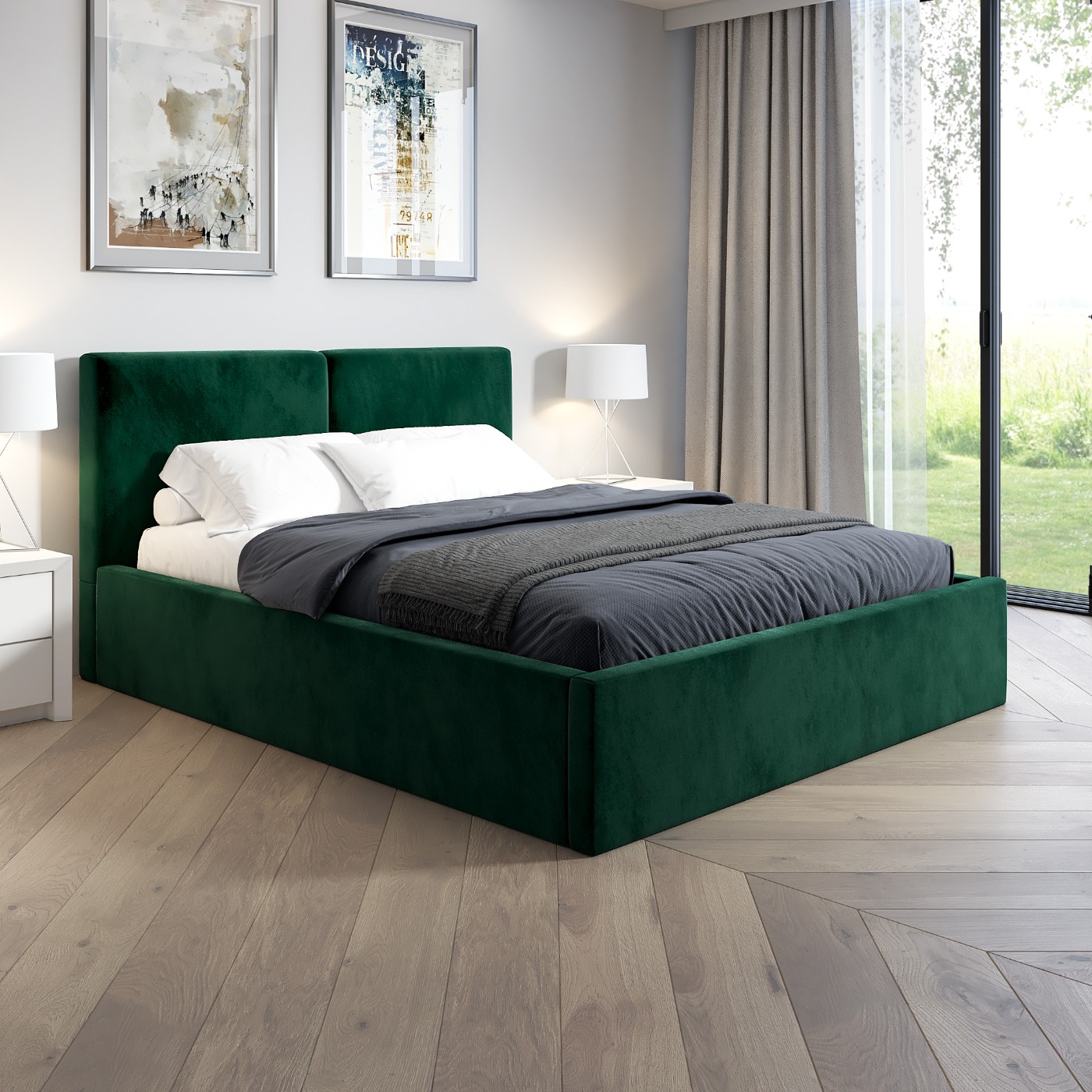 Łóżko tapicerowane 180×200 ALBA, Stelaż metalowy, Zielony