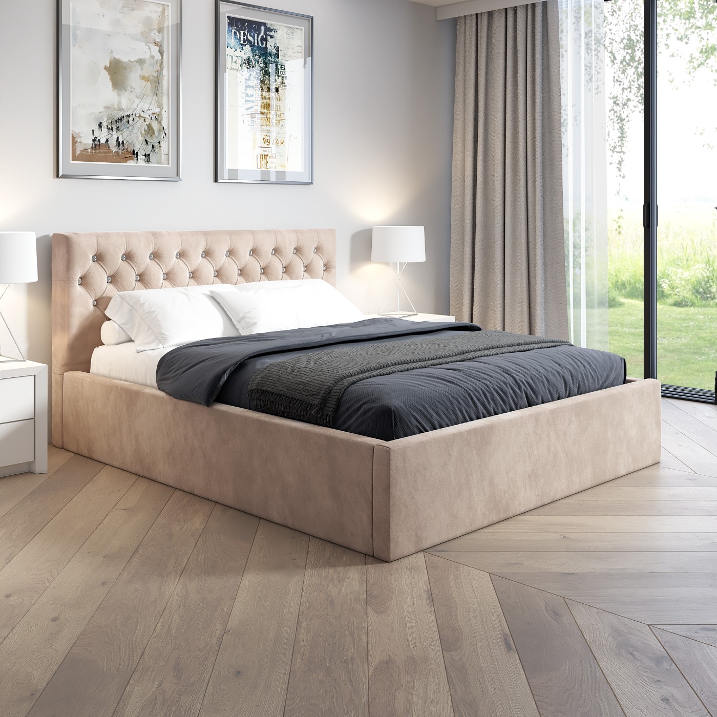 Łóżko tapicerowane 180×200 DOHA, Beżowy, Pojemnik