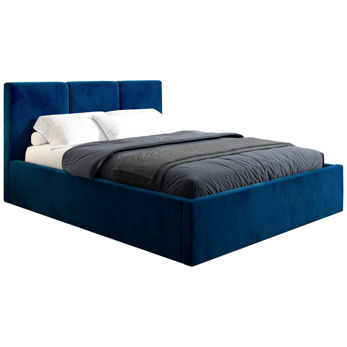Łóżko tapicerowane 180×200 LENS, Granatowy, Pojemnik