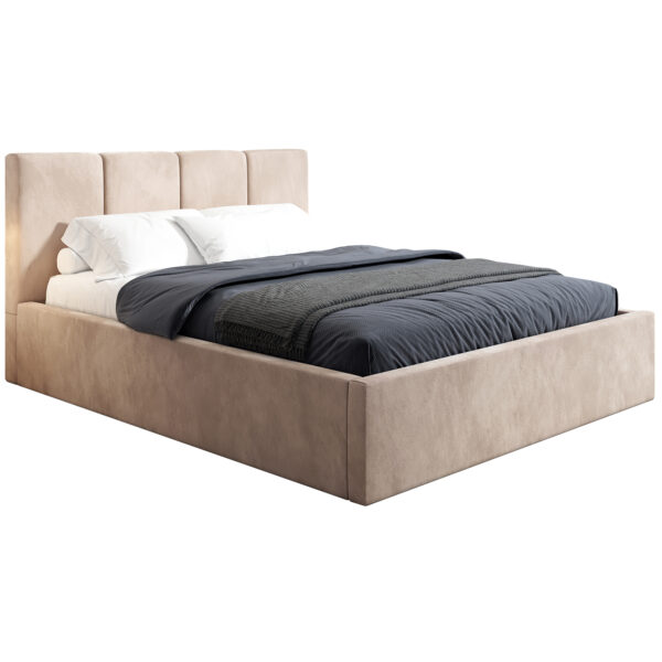 Łóżko tapicerowane 180×200 SENS, Beżowy, Pojemnik