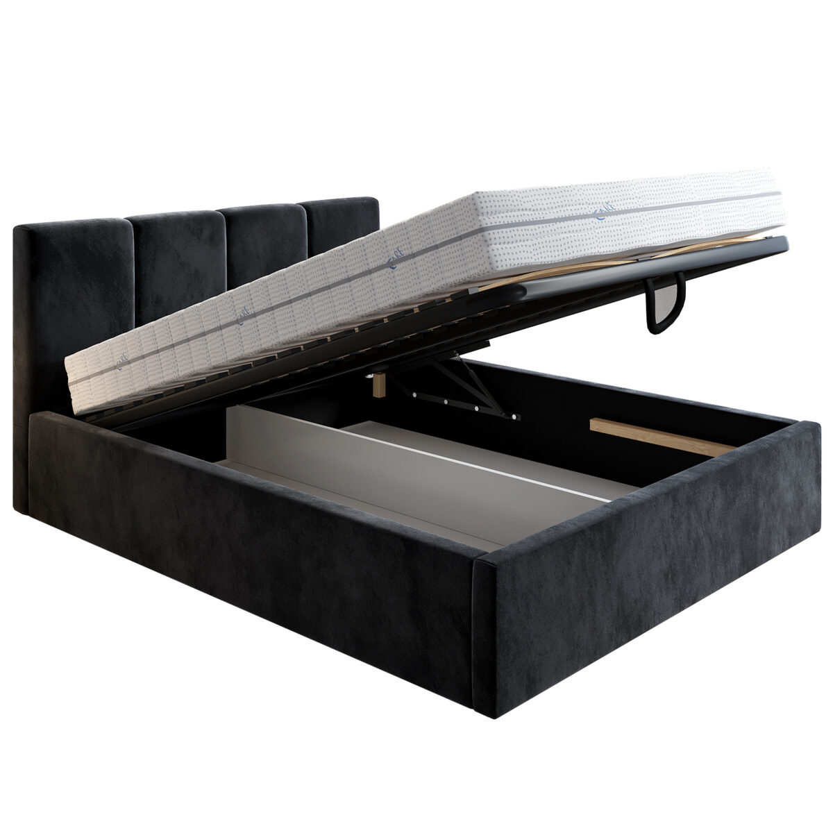 Łóżko tapicerowane 180×200 SENS, Stelaż metalowy, Czarny