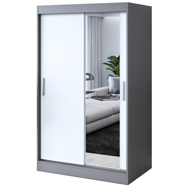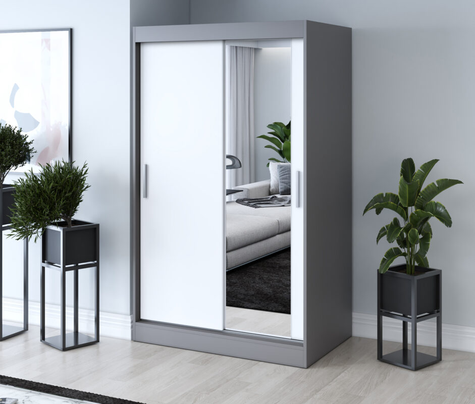 Strona główna > Szafy przesuwne > Szafa przesuwna 1 x lustro 120×200 Hugo , Antracyt mat / Biały mat