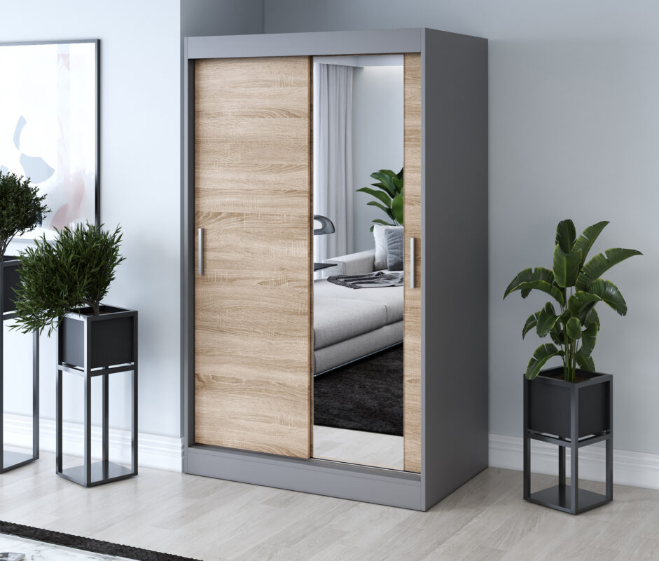 Strona główna > Szafy przesuwne > Szafa przesuwna 1 x lustro 120×200 Hugo , Antracyt mat / Dąb Sonoma
