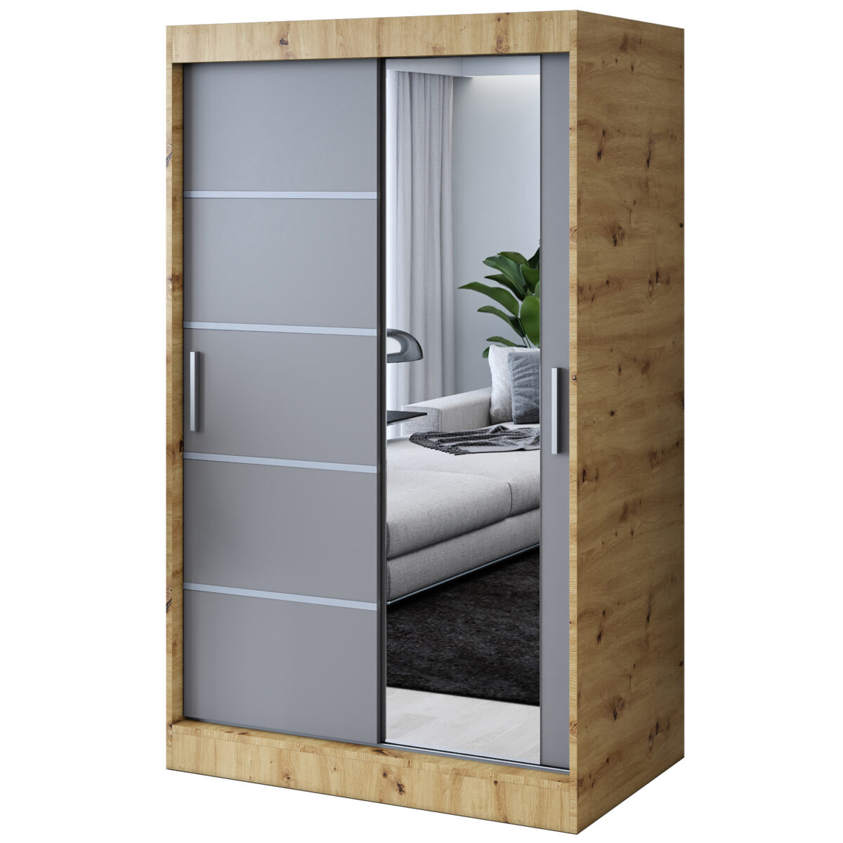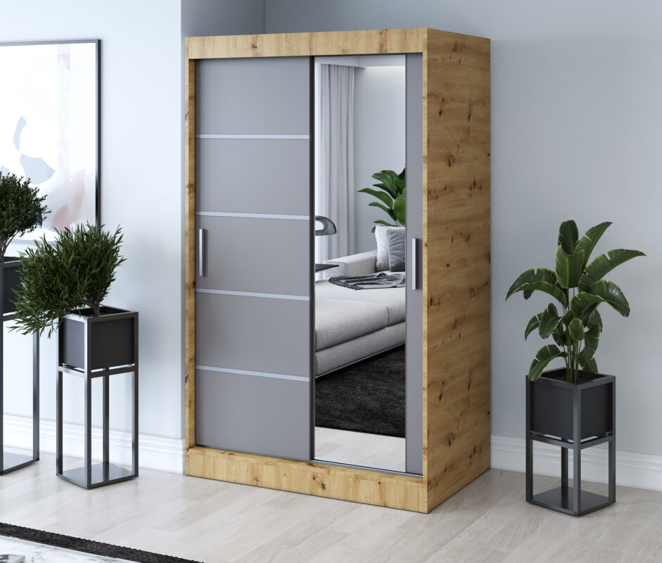 Szafa przesuwna 1 x lustro 120×200 Pepe , Dąb Artisan / Antracyt mat