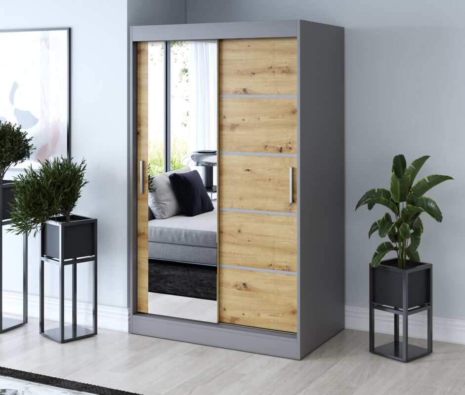 Strona główna > Szafy przesuwne > Szafa przesuwna 1 x lustro 120×200 Ralf , Antracyt mat / Dąb Artisan