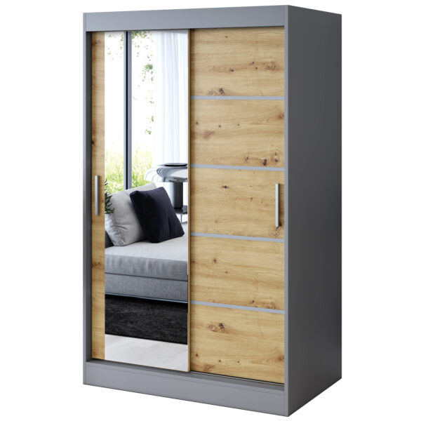 Szafa przesuwna 1 x lustro 120×200 Ralf , Antracyt mat / Dąb Artisan