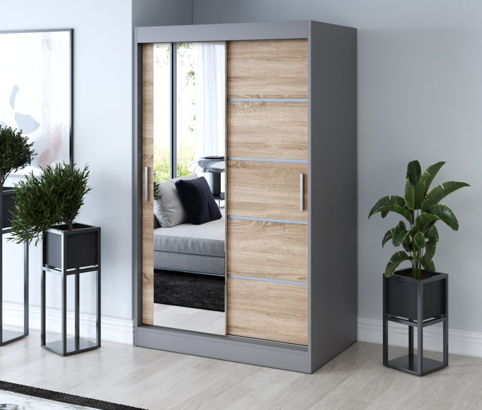 Strona główna > Szafy przesuwne > Szafa przesuwna 1 x lustro 120×200 Ralf , Antracyt mat / Dąb Sonoma