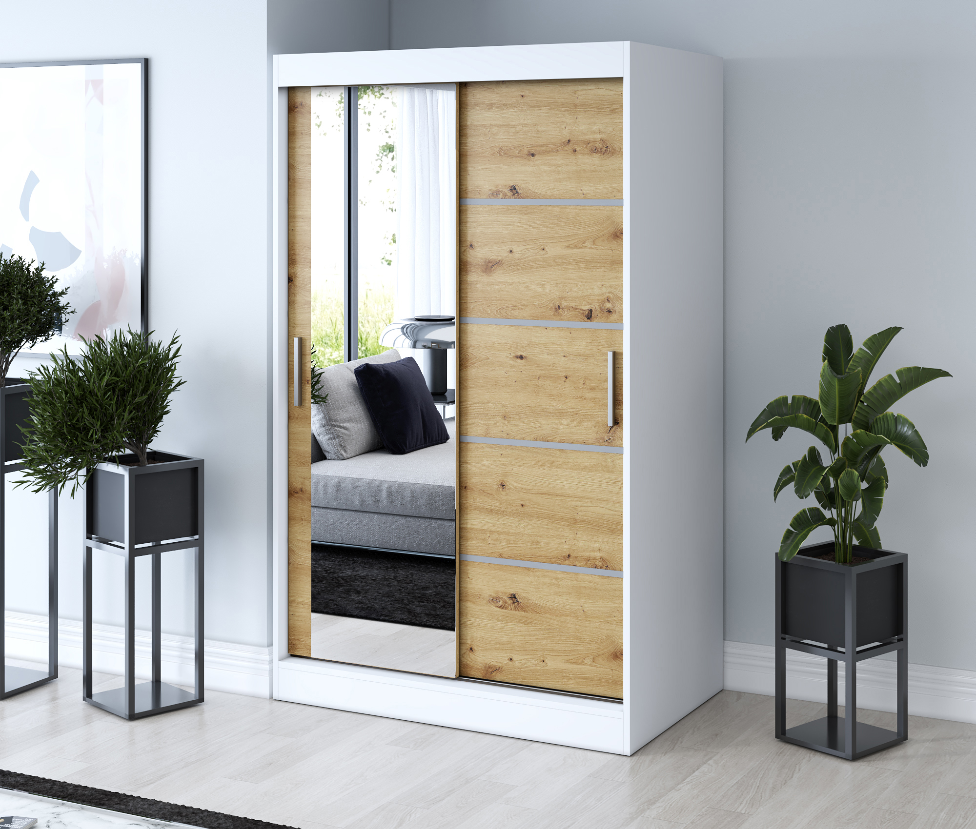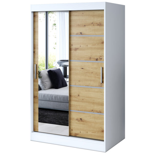 Strona główna > Szafy przesuwne > Szafa przesuwna 1 x lustro 120×200 Ralf , Biały mat / Dąb Artisan