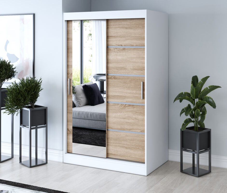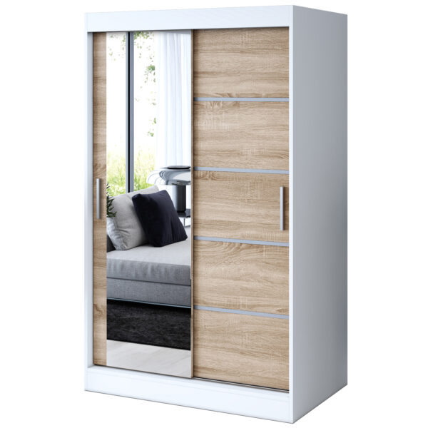 Strona główna > Szafy przesuwne > Szafa przesuwna 1 x lustro 120×200 Ralf , Biały mat / Dąb Sonoma