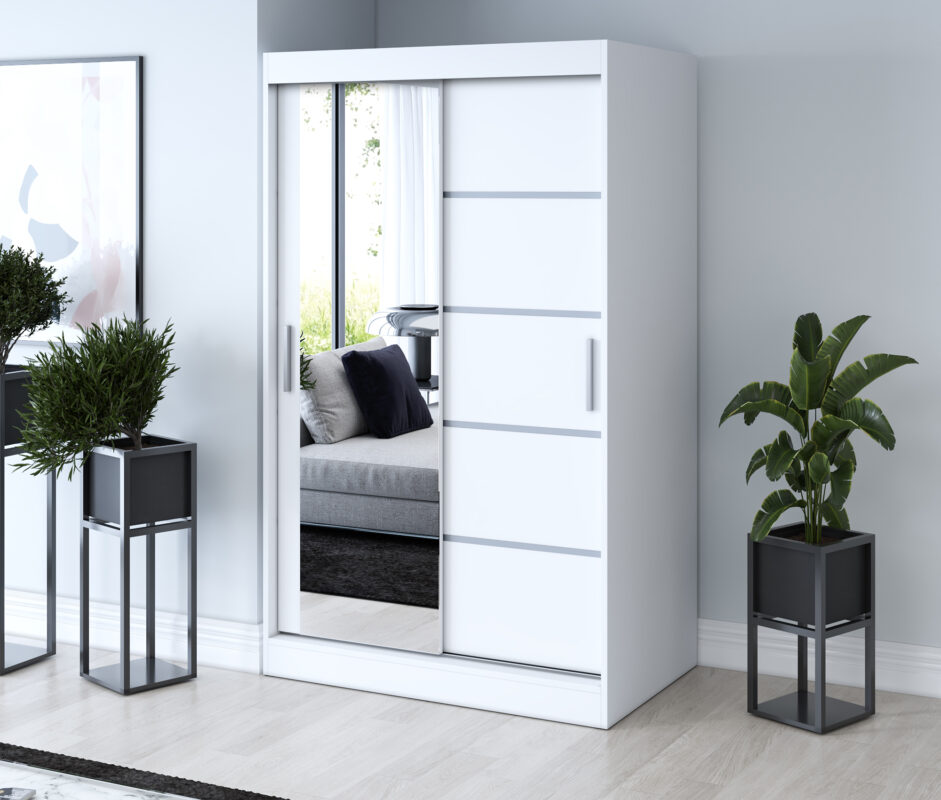 Szafa przesuwna 1 x lustro 120×200 Ralf , Biały mat