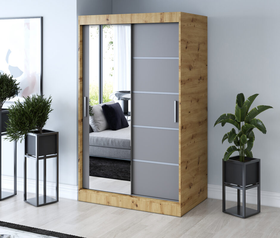 Strona główna > Szafy przesuwne > Szafa przesuwna 1 x lustro 120×200 Ralf , Dąb Artisan / Antracyt mat