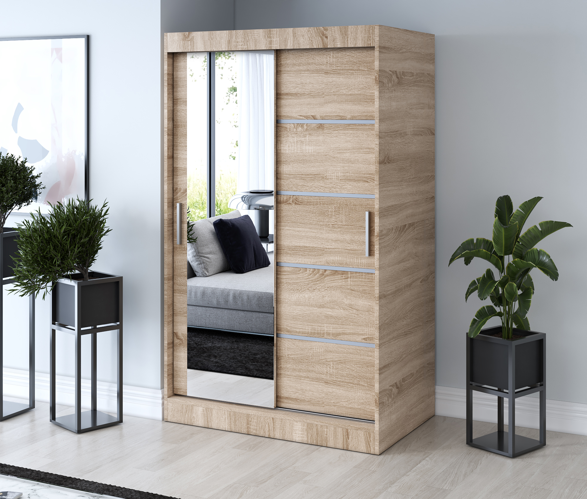 Strona główna > Szafy przesuwne > Szafa przesuwna 1 x lustro 120×200 Ralf , Dąb Sonoma
