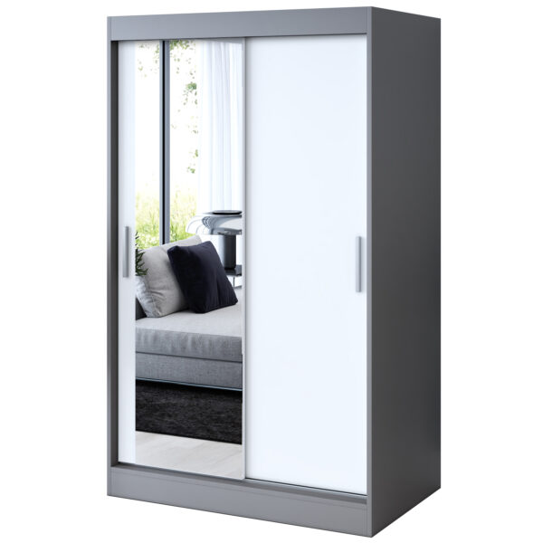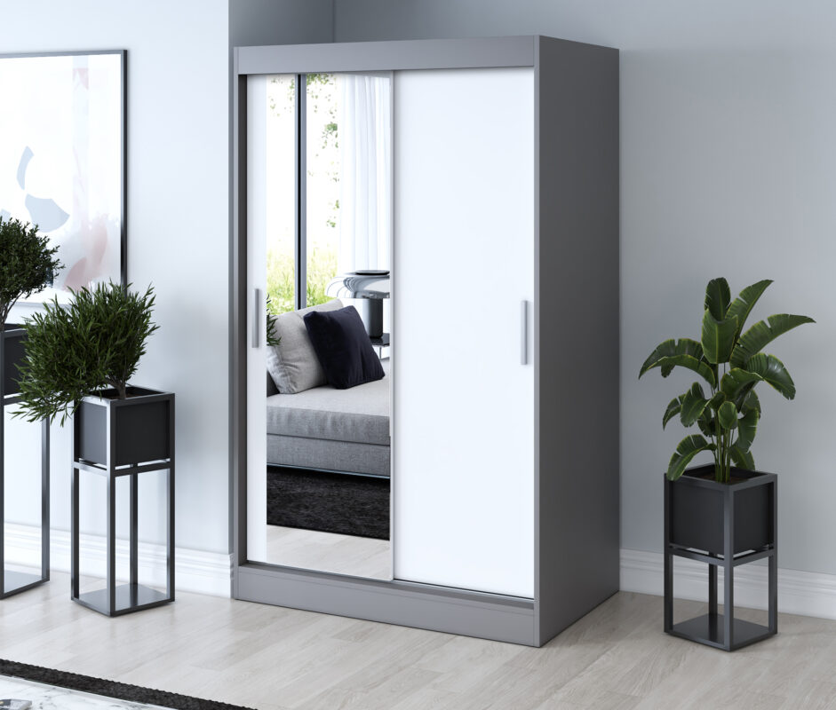 Strona główna > Szafy przesuwne > Szafa przesuwna 1 x lustro 120×200 Sofia , Antracyt mat / Biały mat