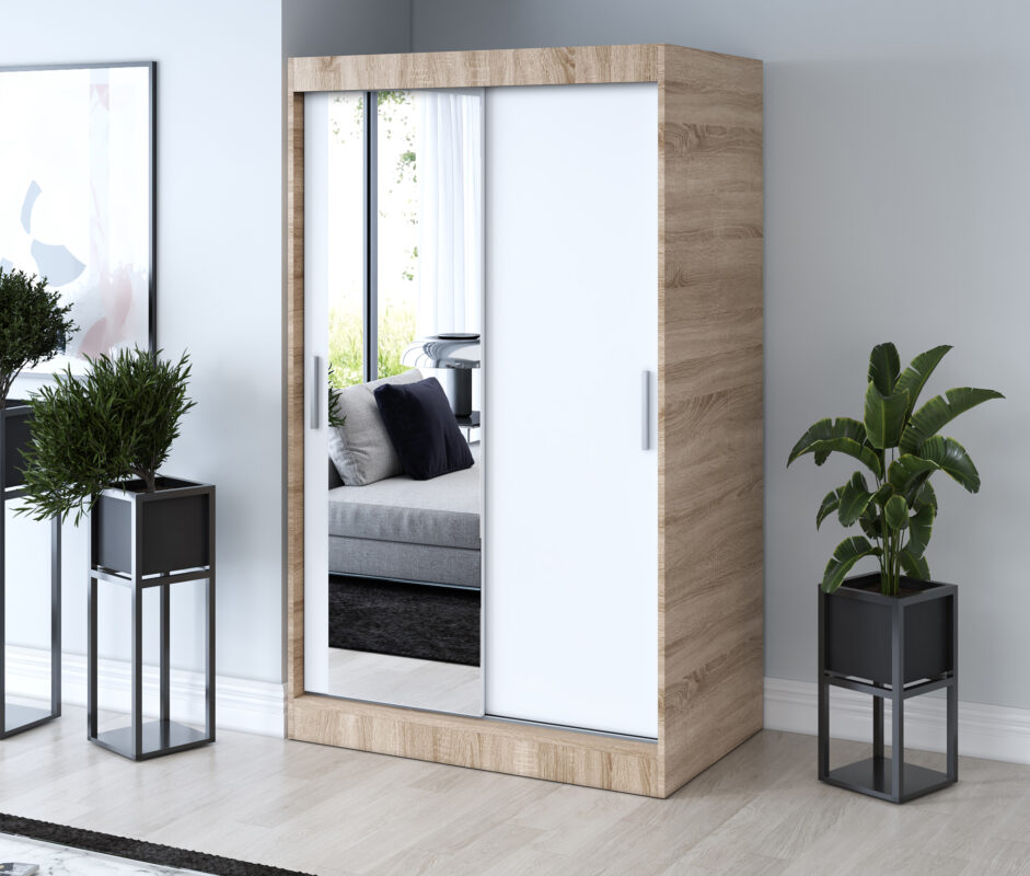 Strona główna > Szafy przesuwne > Szafa przesuwna 1 x lustro 120×200 Sofia , Dąb Sonoma / Biały mat