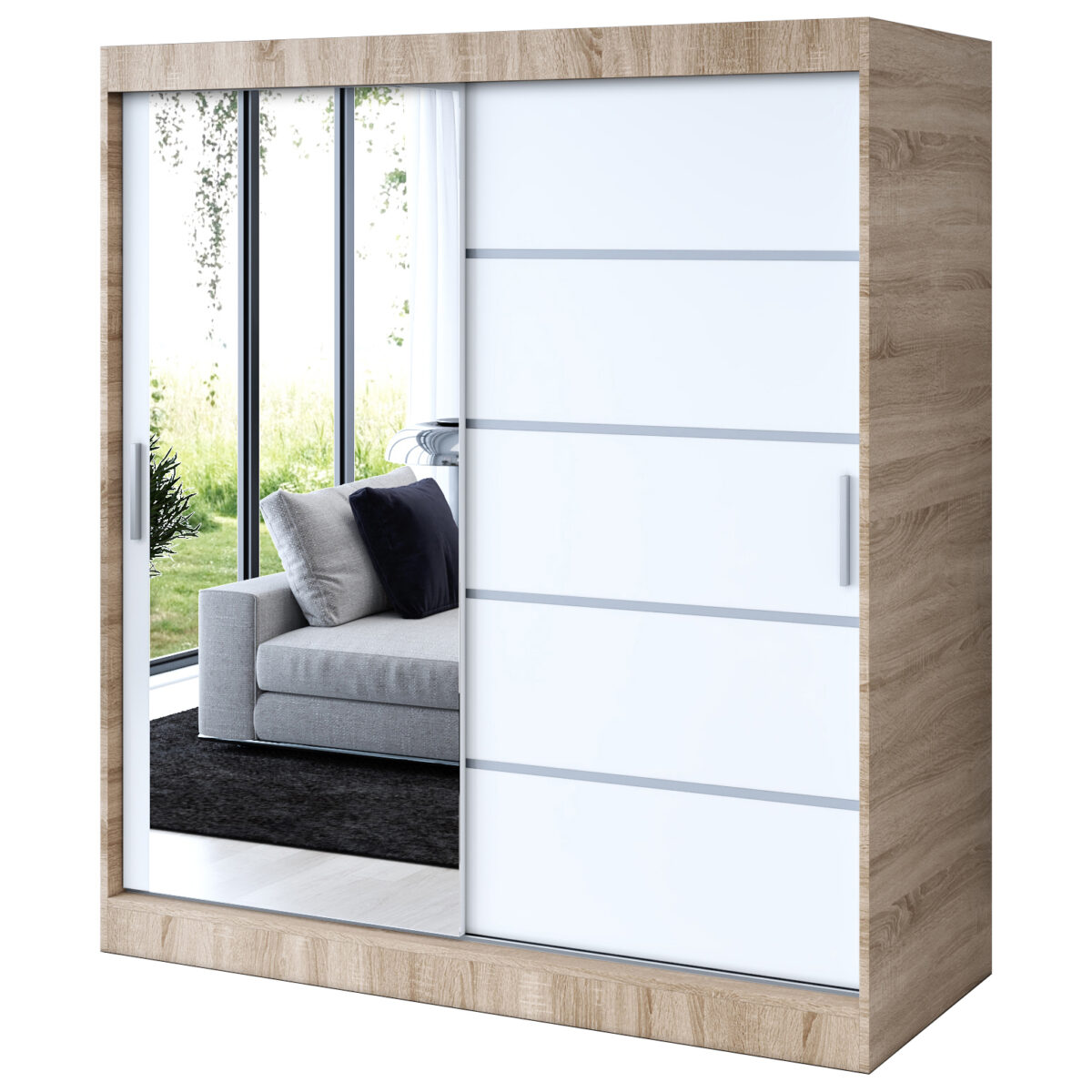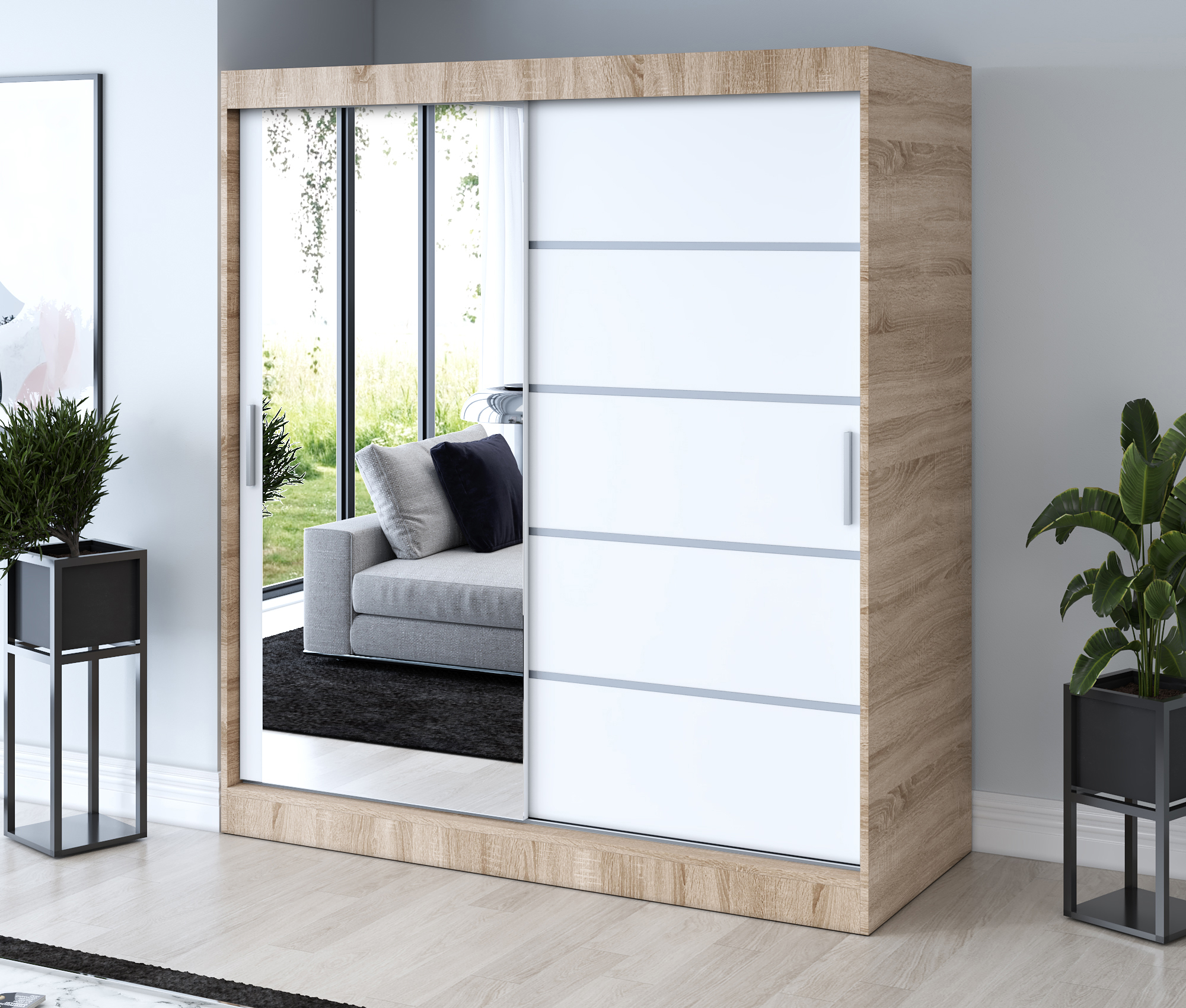 Strona główna > Szafy przesuwne > Szafa przesuwna 1 x Lustro 180×200 Ralf , Dąb Sonoma / Biały mat