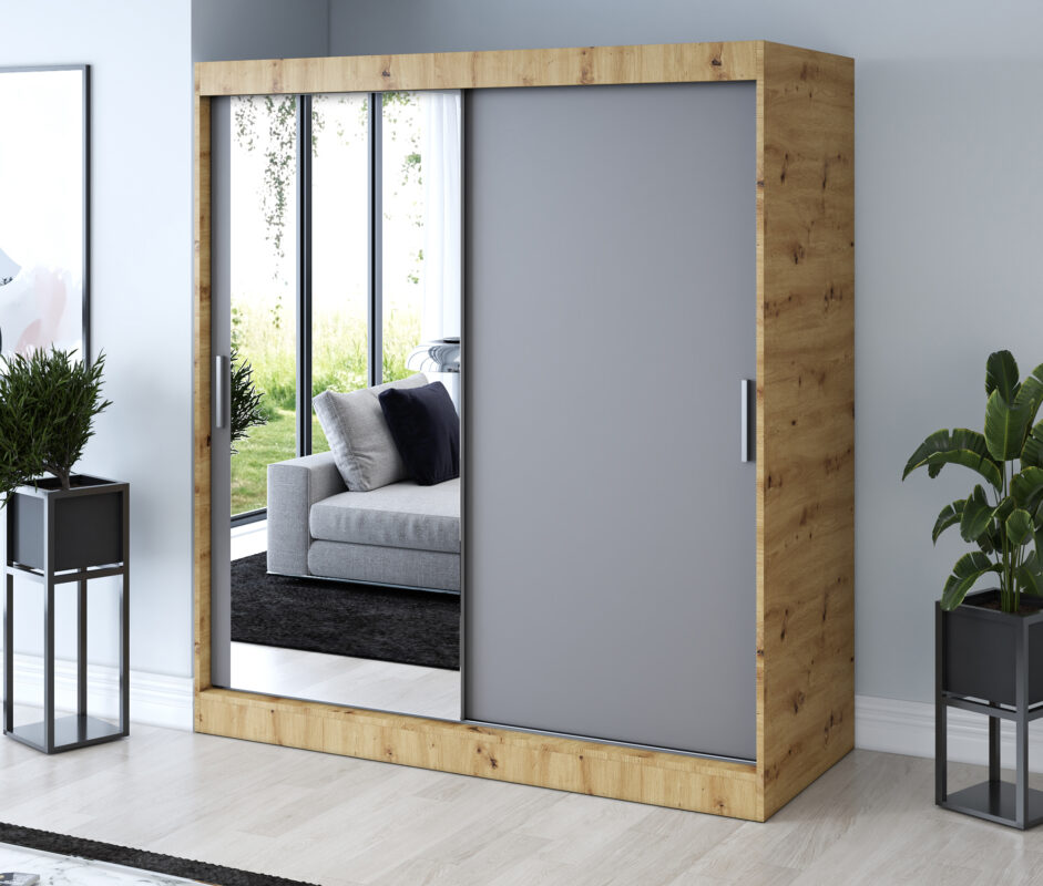 Strona główna > Szafy przesuwne > Szafa przesuwna 1 x Lustro 180×200 Sofia, Dąb Artisan / Antracyt mat