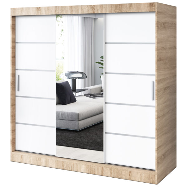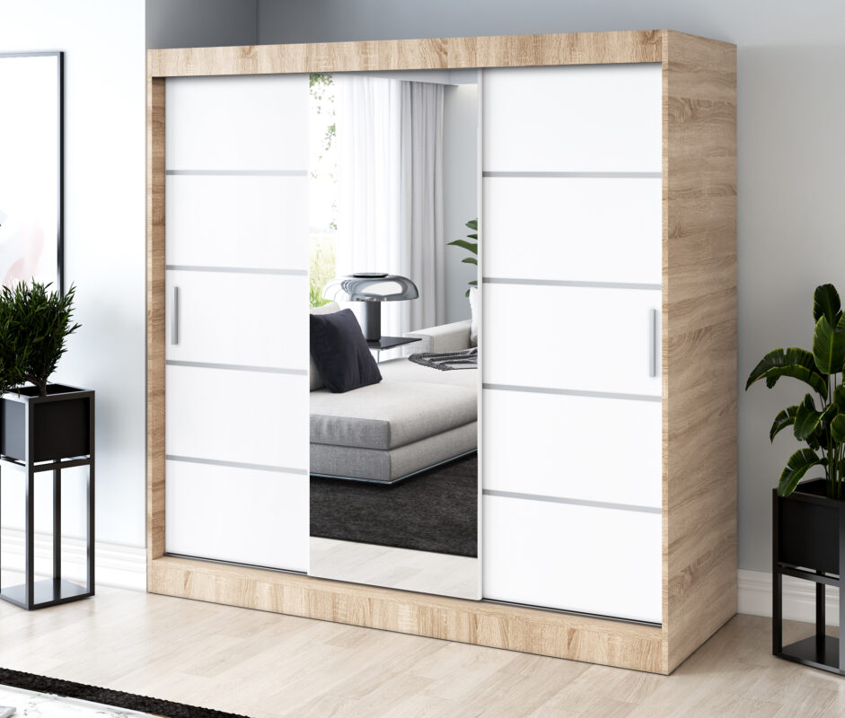 Strona główna > Szafy przesuwne > Szafa przesuwna 1 x Lustro 200×200 Pepe , Dąb Sonoma / Biały mat