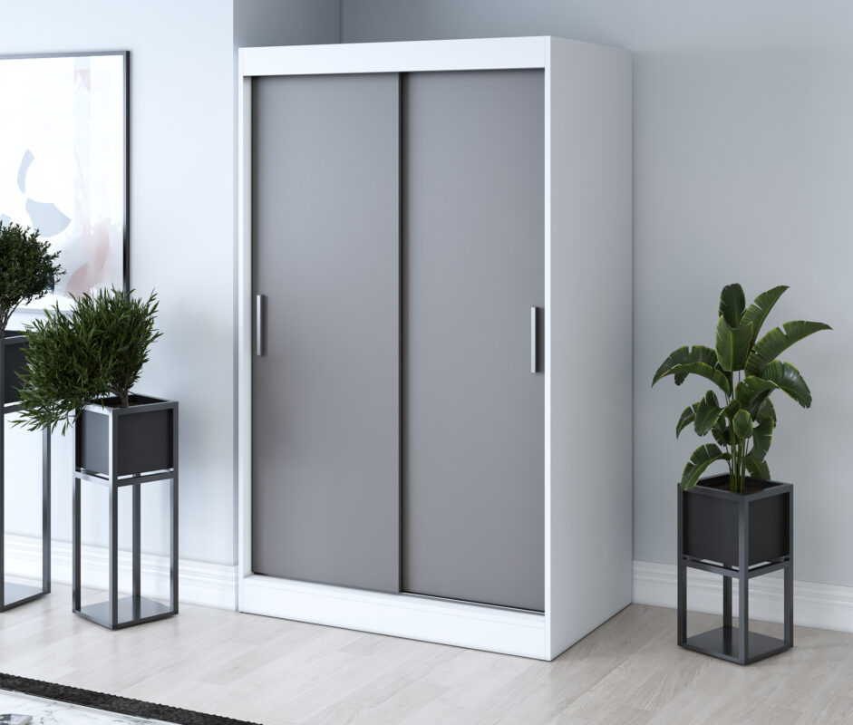 Szafa przesuwna 120×200 Gold , Biały mat / Antracyt mat
