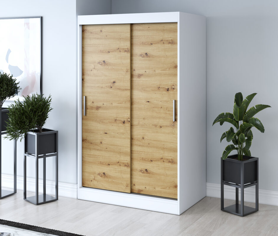 Szafa przesuwna 120×200 Gold , Biały mat / Dąb Artisan