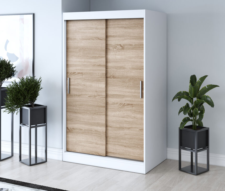 Szafa przesuwna 120×200 Gold , Biały mat / Dąb Sonoma