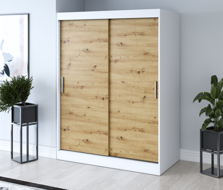 Strona główna > Szafy przesuwne > Szafa przesuwna 150×200 Gold , Biały mat / Dąb Artisan