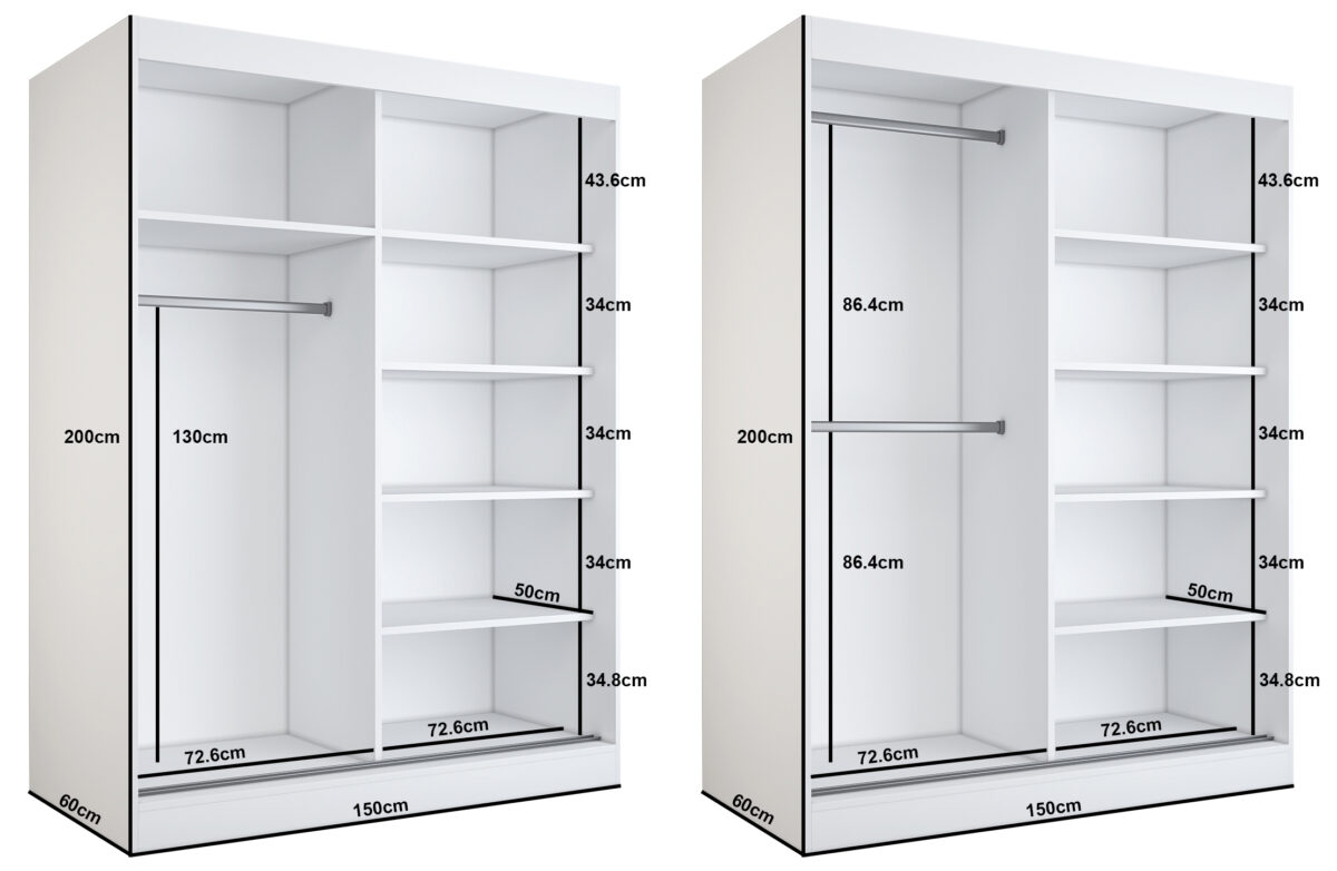 Szafa przesuwna 150×200 Gold , Biały mat / Dąb Sonoma