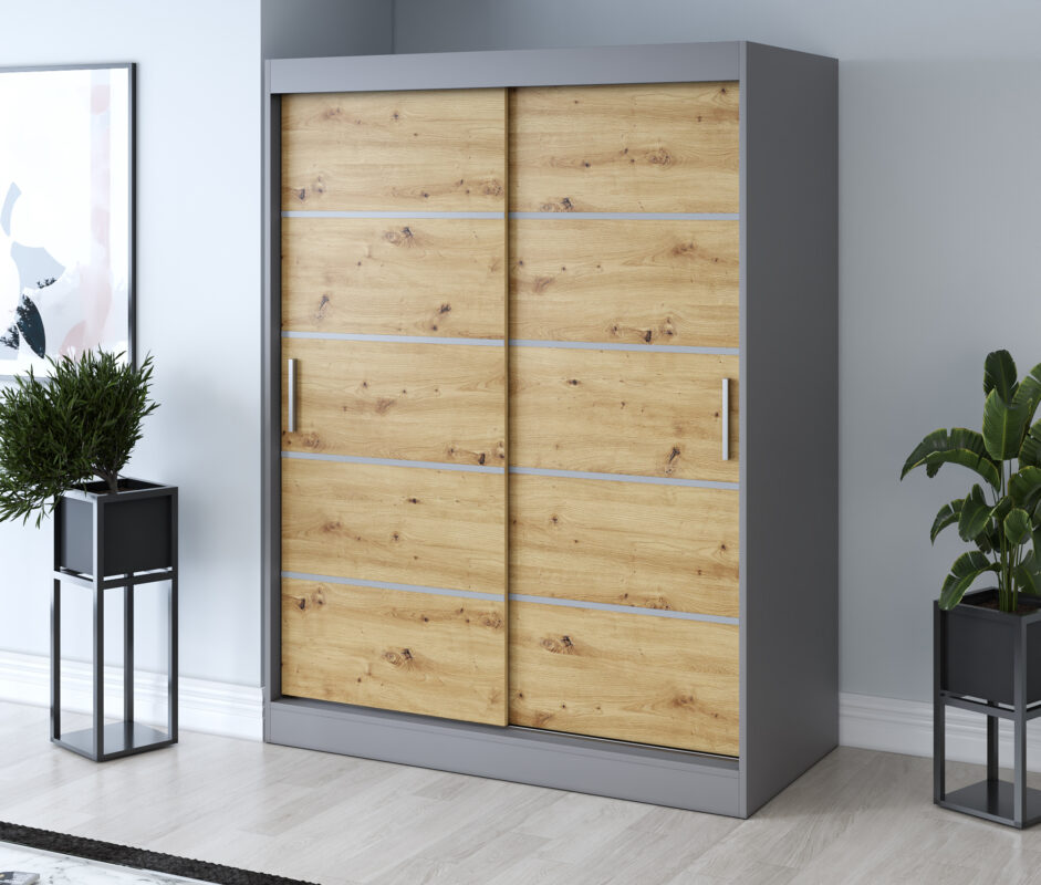 Strona główna > Szafy przesuwne > Szafa przesuwna 150×200 Nina , Antracyt mat / Dąb Artisan