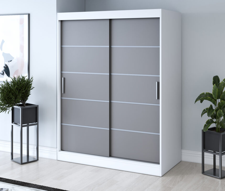 Strona główna > Szafy przesuwne > Szafa przesuwna 150×200 Nina , Biały Mat / Antracyt mat