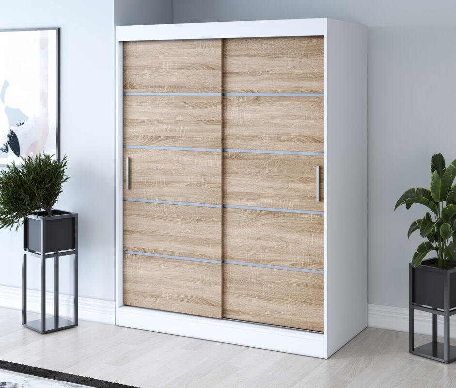 Strona główna > Szafy przesuwne > Szafa przesuwna 150×200 Nina , Biały Mat / Dąb Sonoma