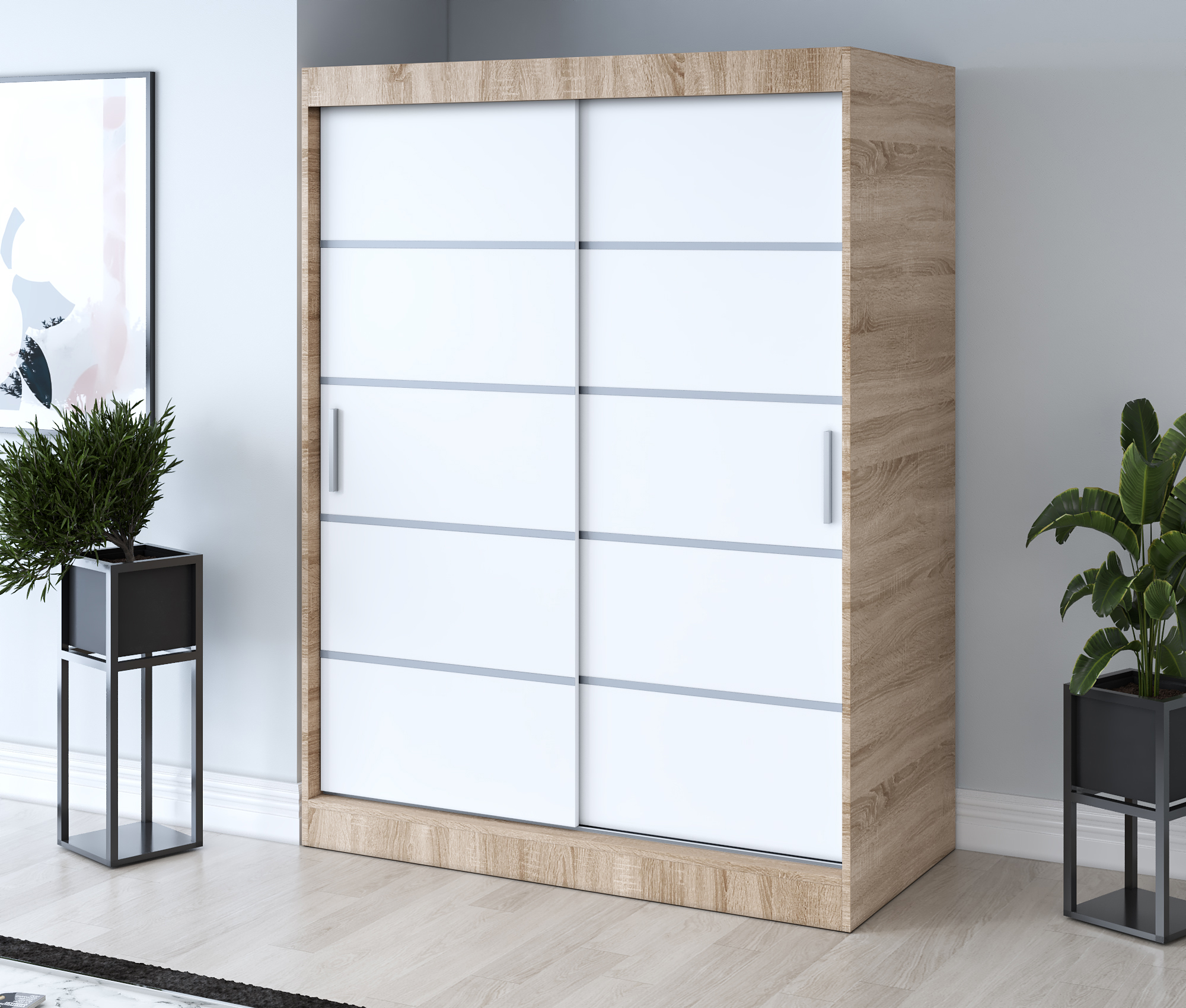 Strona główna > Szafy przesuwne > Szafa przesuwna 150×200 Nina , Dąb Sonoma / Biały mat