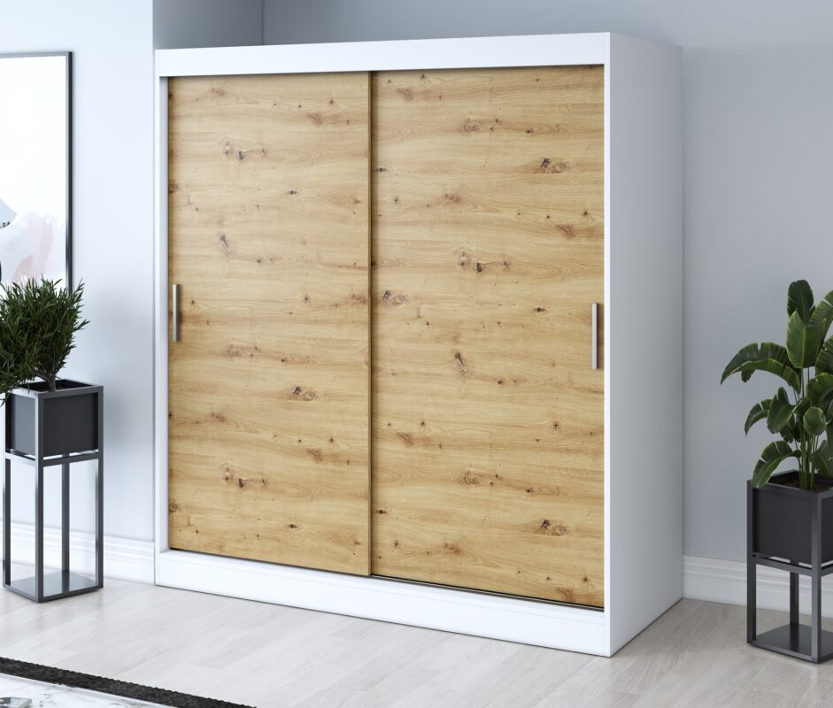 Szafa przesuwna 180×200 Gold , Biały mat / Dąb Artisan