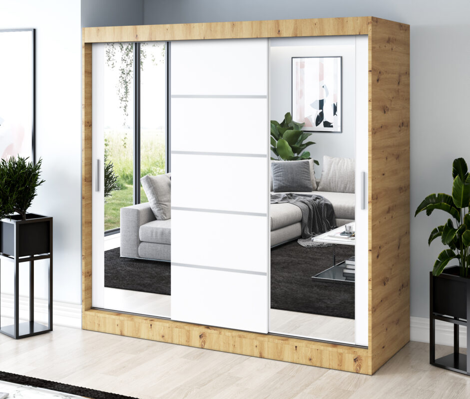 Strona główna > Szafy przesuwne > Szafa przesuwna 2 x Lustro 200×200 Ralf , Dąb Artisan / Biały mat