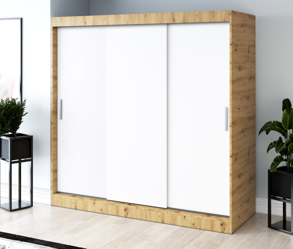 Strona główna > Szafy przesuwne > Szafa przesuwna 200×200 Gold , Dąb Artisan / Biały mat