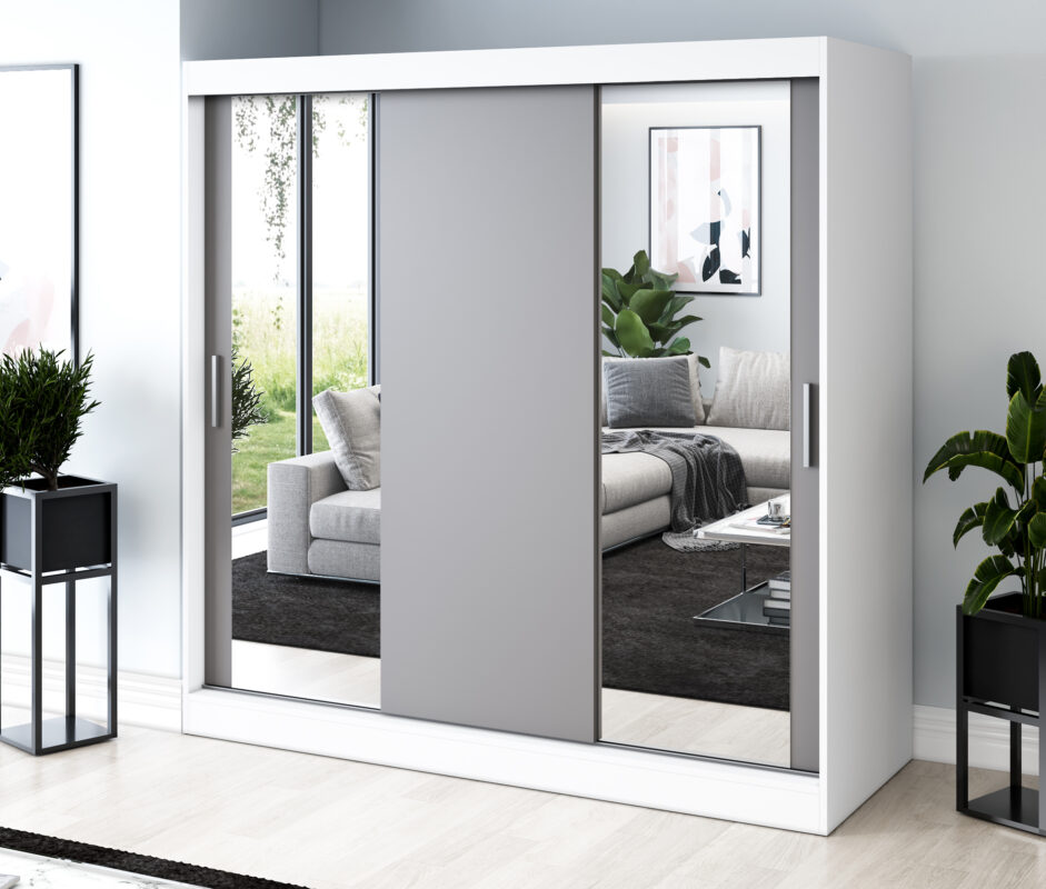 Strona główna > Szafy przesuwne > Szafa przesuwna 2x Lustro 200×200 Sofia , Biały mat / Antracyt mat