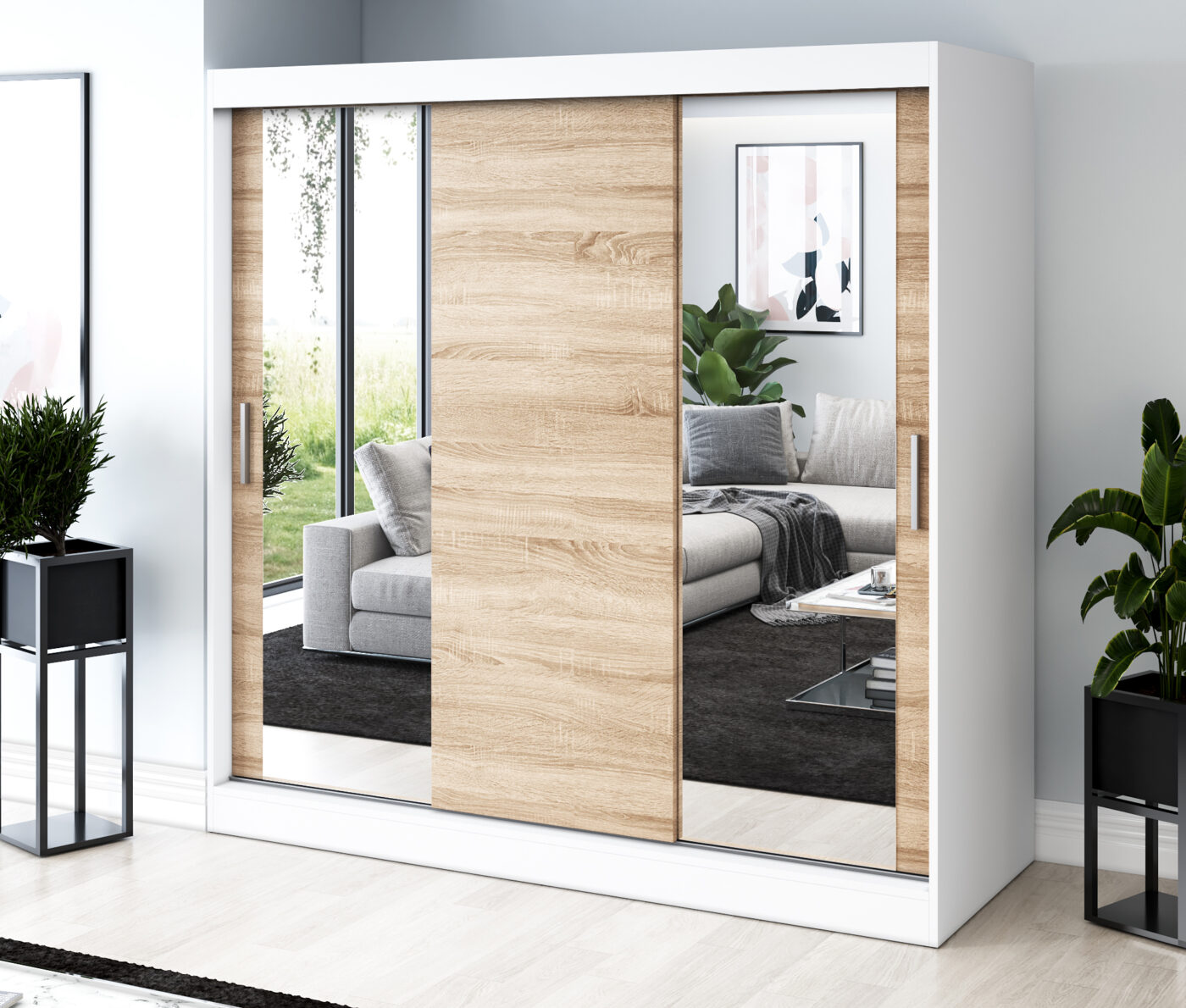 Strona główna > Szafy przesuwne > Szafa przesuwna 2x Lustro 200×200 Sofia , Biały mat / Dąb Sonoma