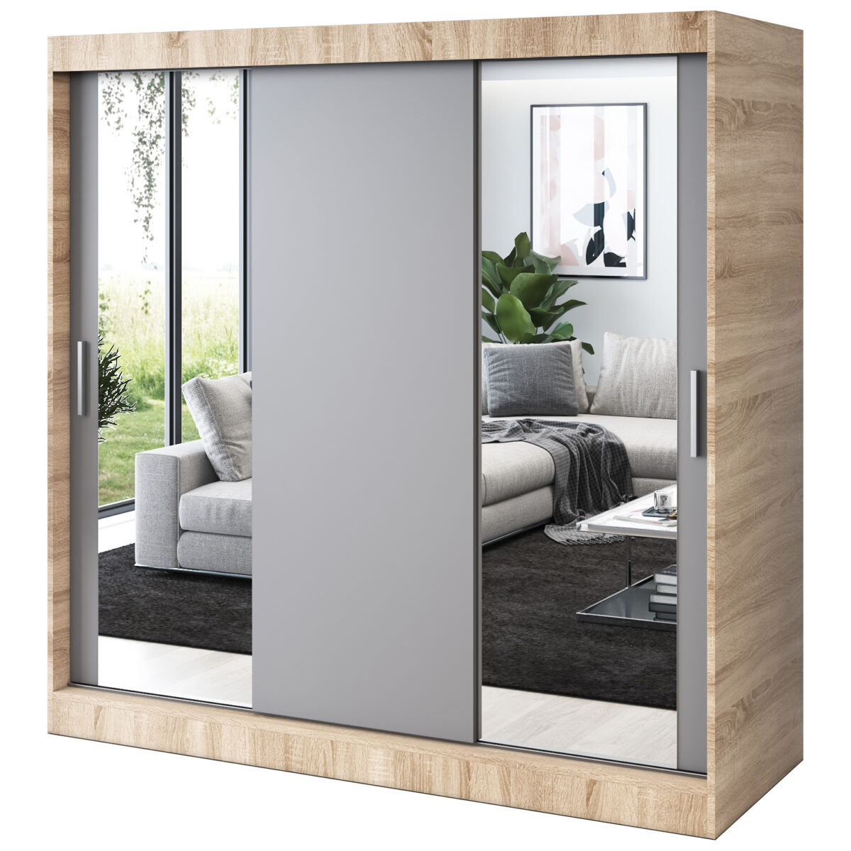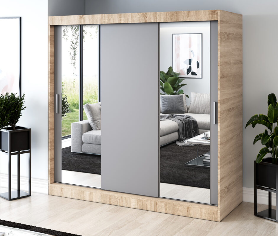 Strona główna > Szafy przesuwne > Szafa przesuwna 2x Lustro 200×200 Sofia , Dąb Sonoma / Antracyt mat