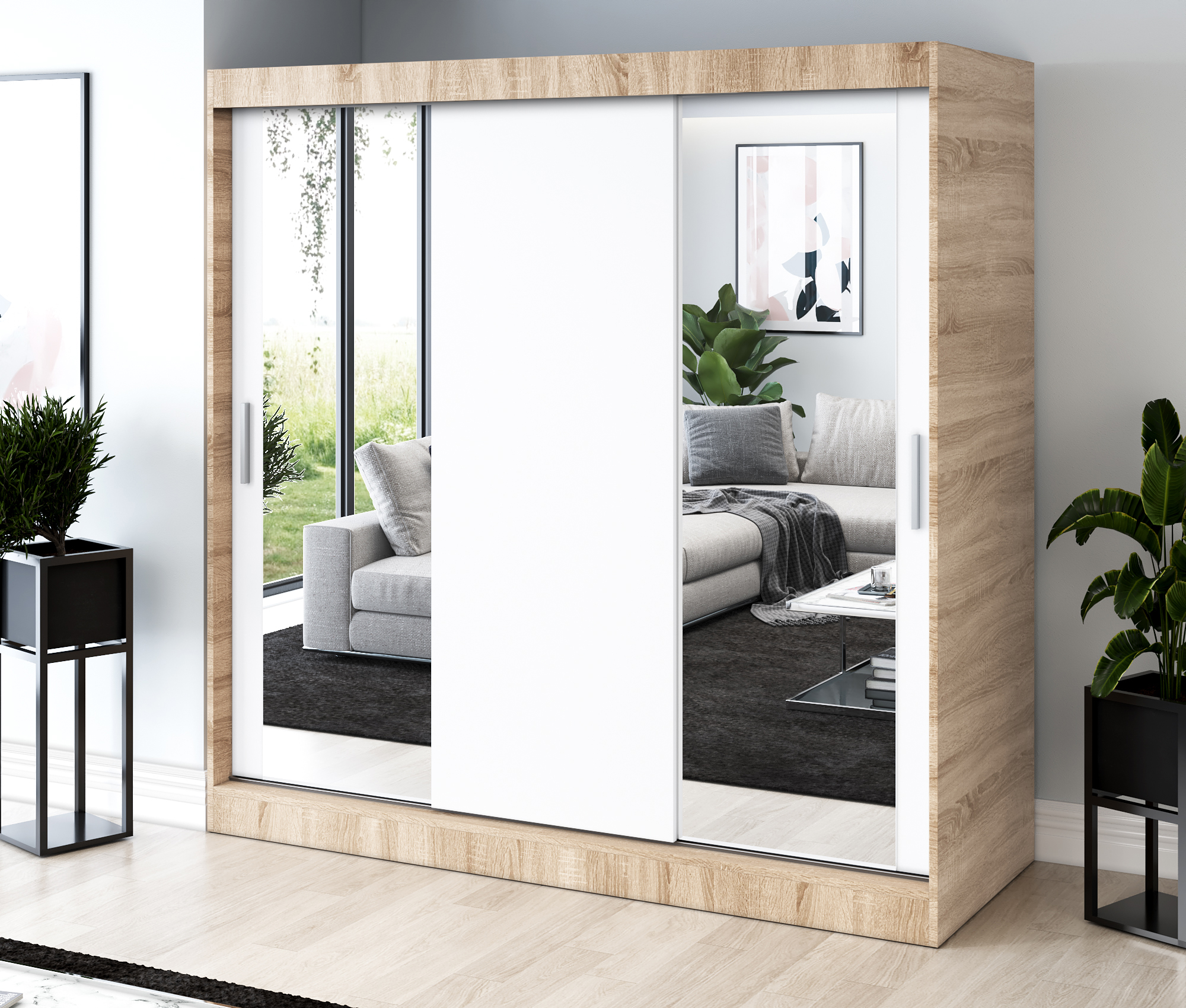 Strona główna > Szafy przesuwne > Szafa przesuwna 2x Lustro 200×200 Sofia , Dąb Sonoma / Biały mat