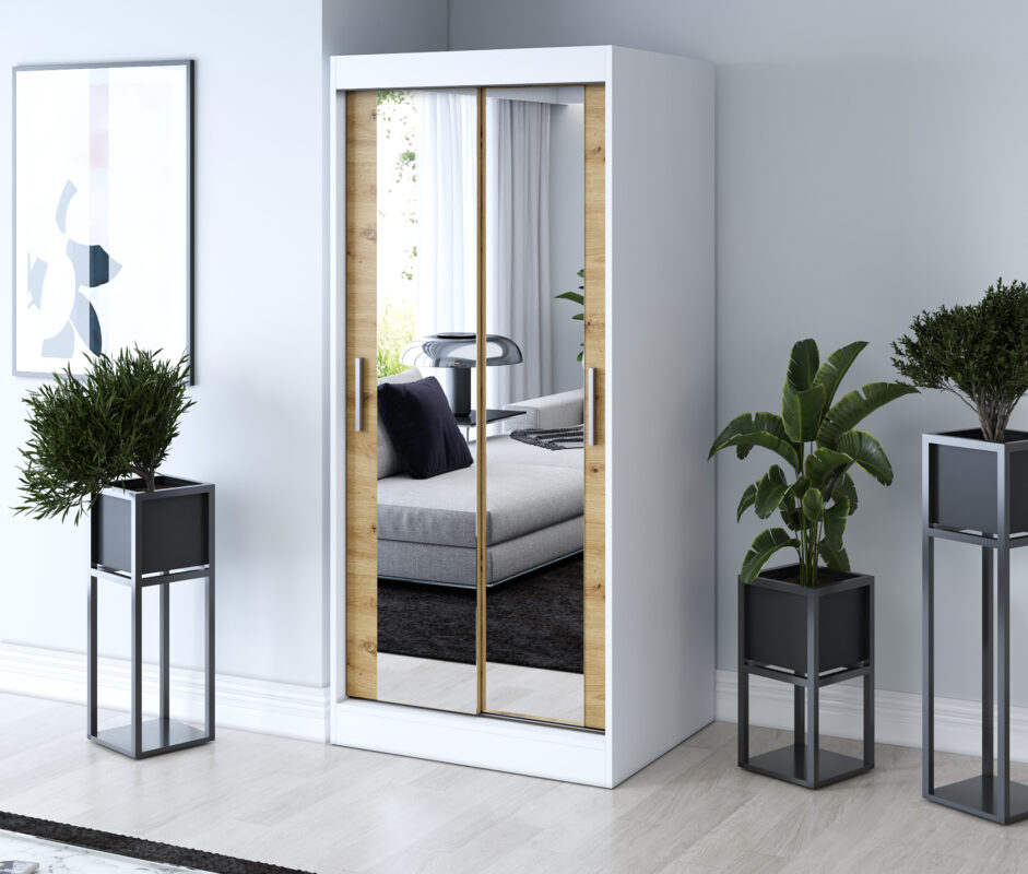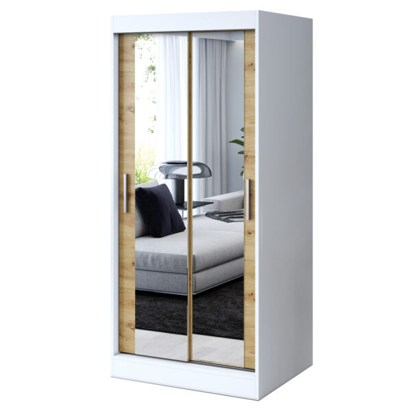 Szafa przesuwna 2x Lustro 90×200 Karl , Biały mat / Dąb Artisan