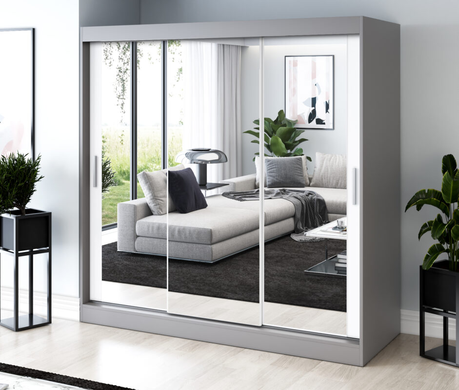 Szafa przesuwna 3x Lustro 200×200 Karl, Antracyt mat / Biały mat