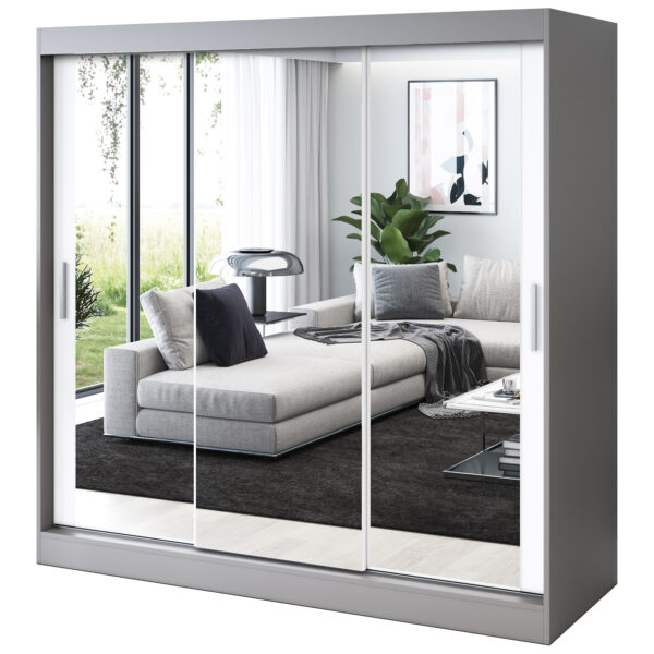 Strona główna > Szafy przesuwne > Szafa przesuwna 3x Lustro 200×200 Karl, Antracyt mat / Biały mat