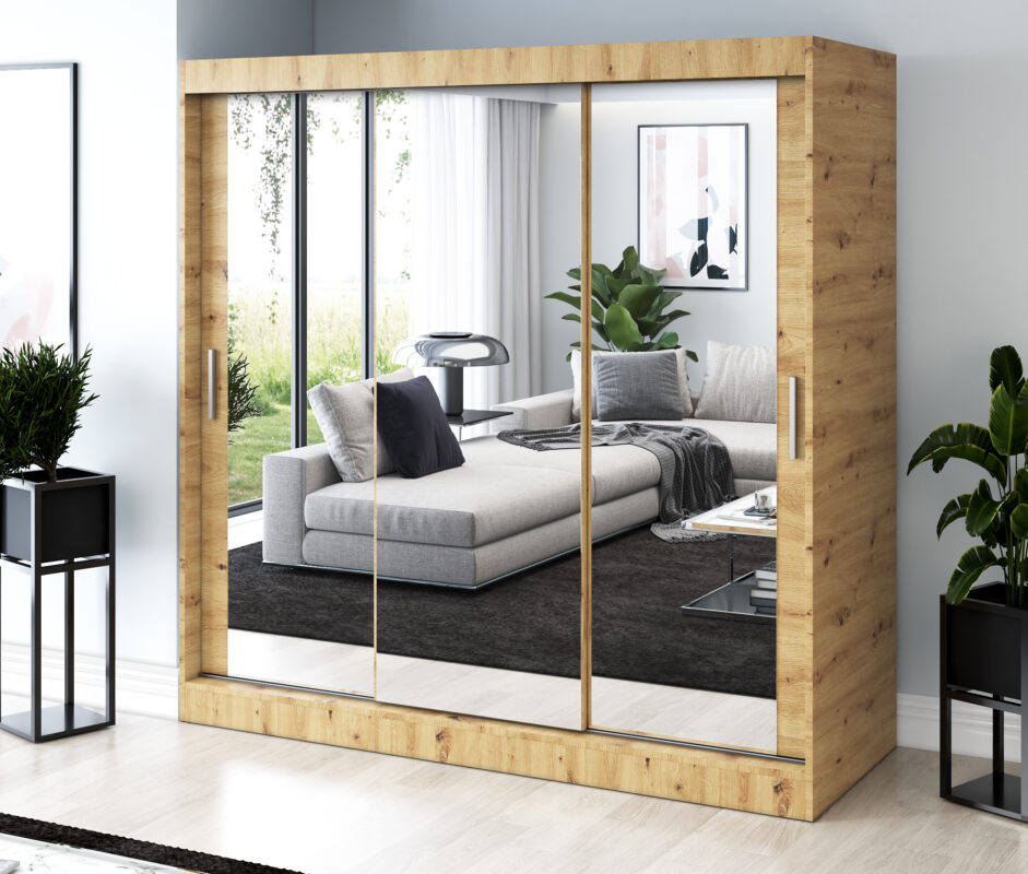 Strona główna > Szafy przesuwne > Szafa przesuwna 3x Lustro 200×200 Karl, Dąb Artisan